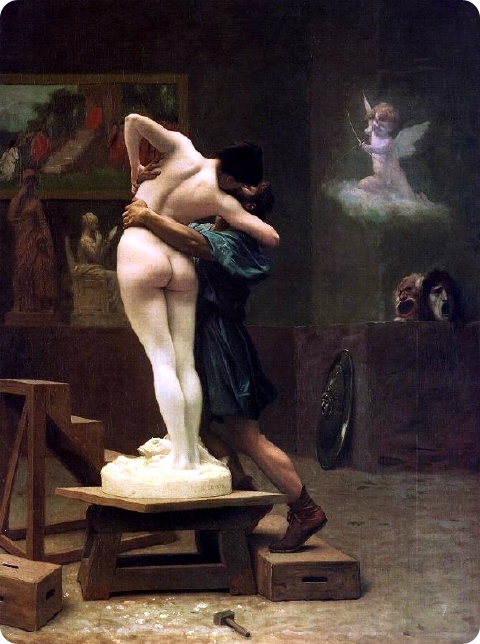 A variation on the unbelievable subject with the real comes from Gerome’s Pygmalion and Galatea. He conveys the legend of the sculpture of Galatea being so perfect that the stone turned into living flesh. Gerome does make the far-fetched scene look as if this is really happening.