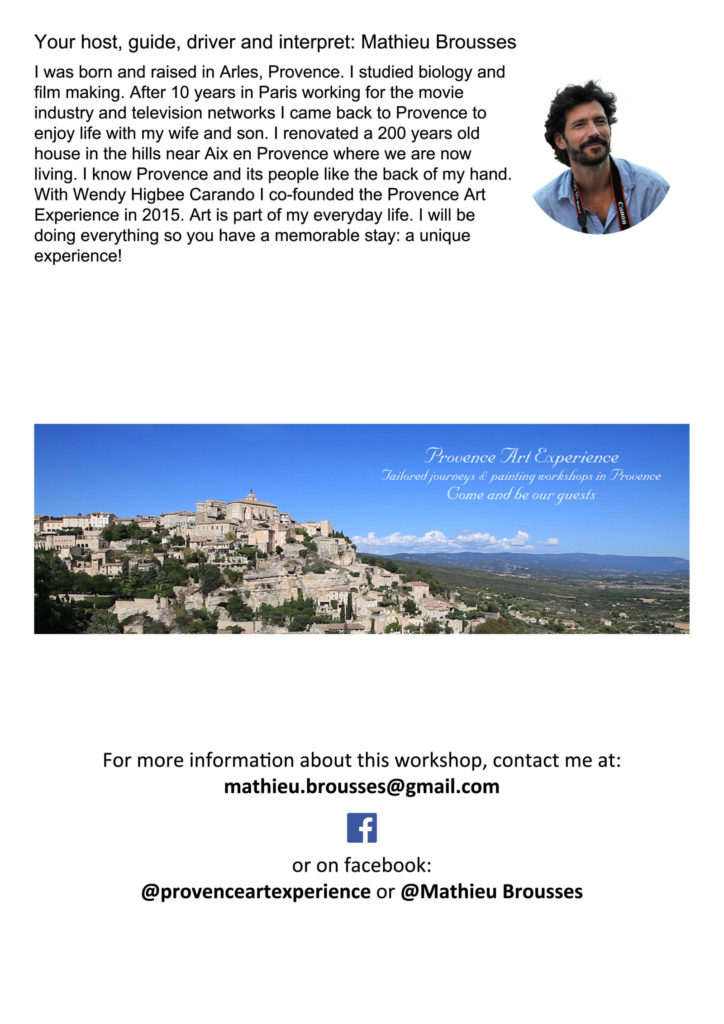 Join us in the Fall of 2020 for an great pastel workshop visiting sites of outstanding beauty and history guided and hosted by the knowledgeable, kind, thoughtful, and local expert Mathieu Brousses, and taught by internationally acclaimed artist me, Michael Newberry. Comfortable living situation, with all meals either prepared by a French local, picnic, and local bistros.
