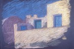 Years ago I took a pastel painting trip of a lifetime, for three months I traveled from Athens, Greece to many islands, eventually to Istanbul, and slowly back again to Athens. My first island was Tinos, from the harbor I rented a scooter, booked a tiny house outside of town for 15 dollars a night. The porch had a sloping view over gray-green olive groves down to the dark and brilliant ultramarine blue Mediterranean, about 300 ft to the left was a small, room-sized luminous white-plastered Byzantine church.