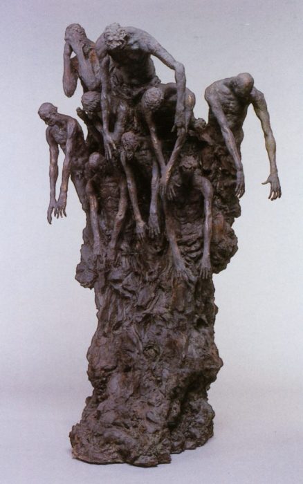 Two influences for this Japanese artist are Rodin and Haniwa, an ancient form of Japanese funeral sculpture (3rd to 6th century AD). Haniwa was composed primarily of terracotta hollowed figures and objects, made for ritual use and buried with the dead or arranged around grave sites, to protect the deceased in the afterlife. They believed the spirit would reside and be protected within the figures.