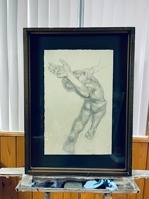Lithograph, Ascension Day, this is the Artist’s Proof, I created this in 1990, as an edition of 75 to raise funds for my show in West Hollywood on Melrose Ave. Original framing from Aesthetic Frame Design, then the best framer in Los Angeles.