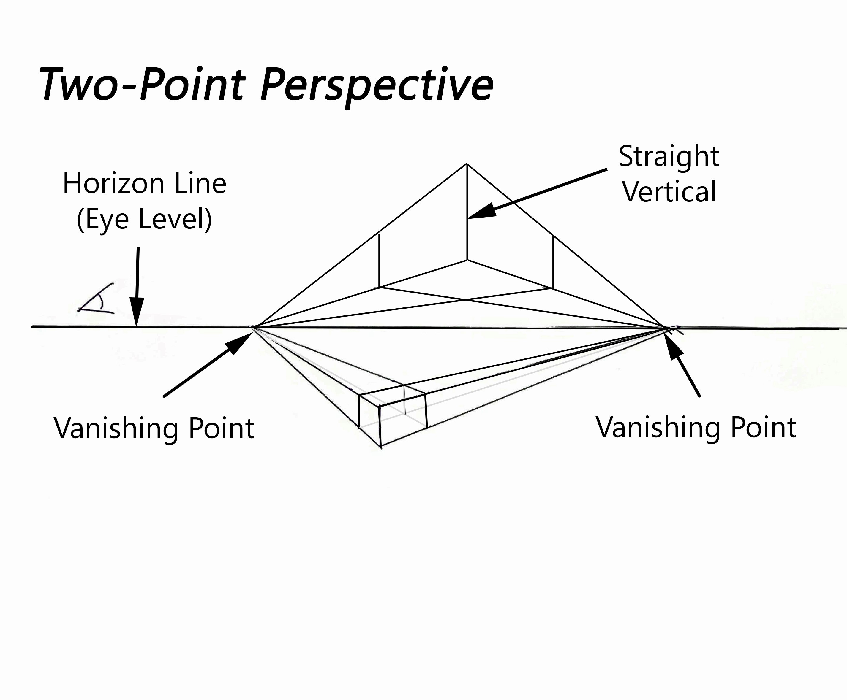 In this study, we examine two- and three-point perspective, which are commonly used to draw the interior and exterior of box-like structures from angled views. They differ from one-point perspective, which involves looking at a structure or interior straight on.