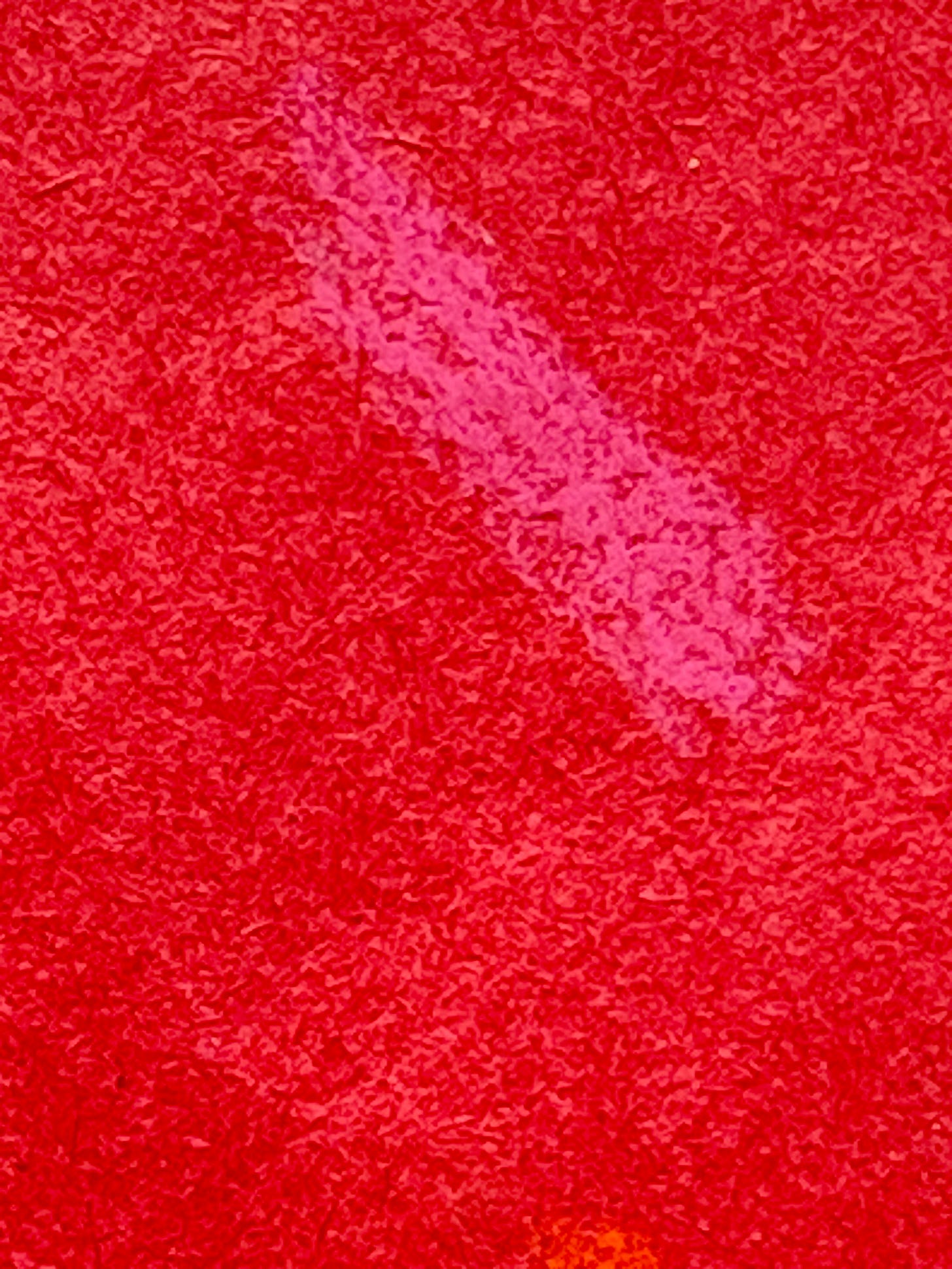 For example, you could take a magenta pastel and put it on the red paper, and it will register cool. Because the magenta mixes with the blue, the red and blue on the red paper, the bluish tint is what surfaces. When on another colored paper, like green or blue, the magenta pastel color will register as extremely hot.