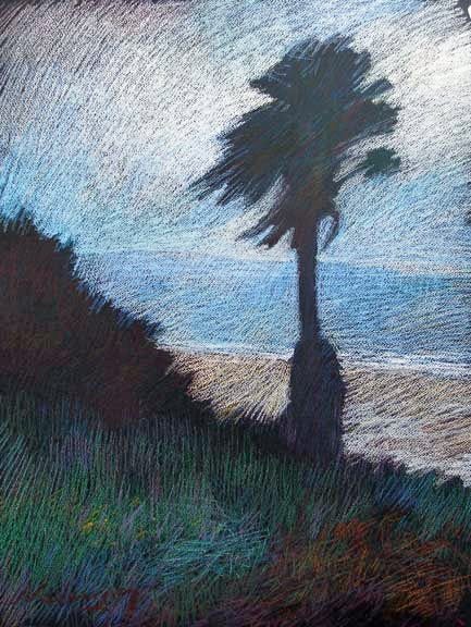 247 Palm in Wind, 2009, pastel, 24×18”.