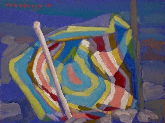 245 Red Umbrella, 2008, oil on panel, 9×12”.