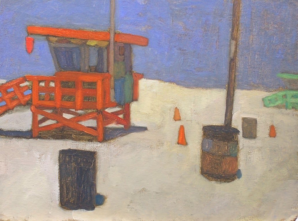 243 Lifeguard Station (Venice Beach), 2008, oil on panel, 9×12”.