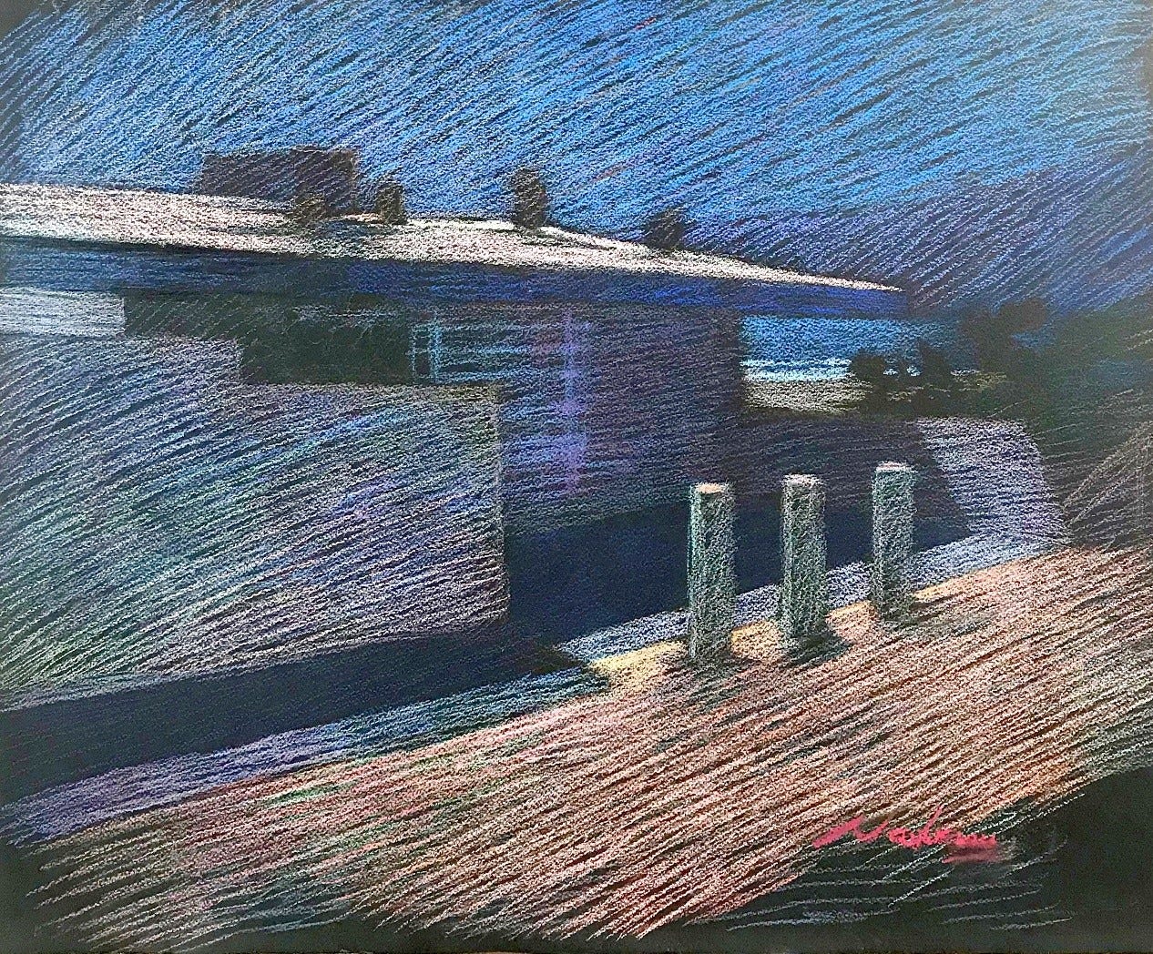 256 Beach House on Pilings, 2010, pastel, 18×24”.
